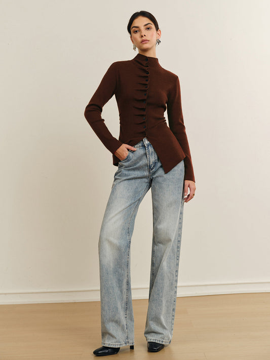 Düğmeli Pileli Bölünmüş Örgü Üst