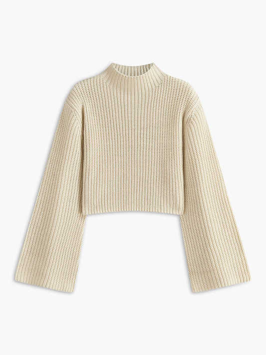 Yün Karışımlı Çan Kollu Kısa Üst Kazak