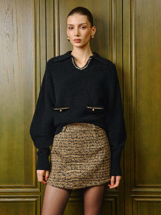 Balıkçı Yaka Metal Detaylı Kısa Kazak