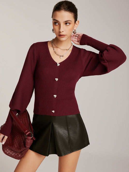 V Yaka Düğmeli Örgü Dış Giyim