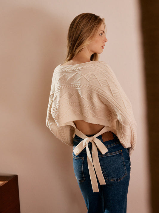 Sırtı Açık İnce Bağcıklı Örgü Üst
