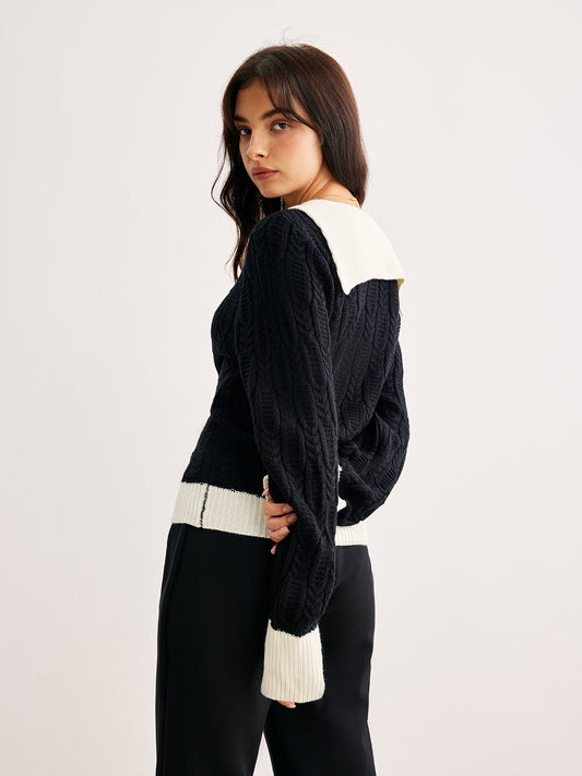 Yan Kontrast Çizgili Balıkçı Yaka Kazak
