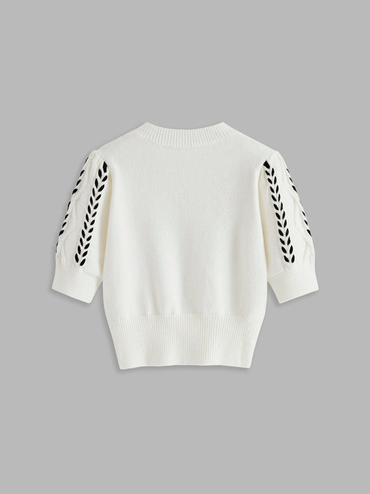 Yuvarlak Yaka Düğüm Düğmeli Örgü Üst
