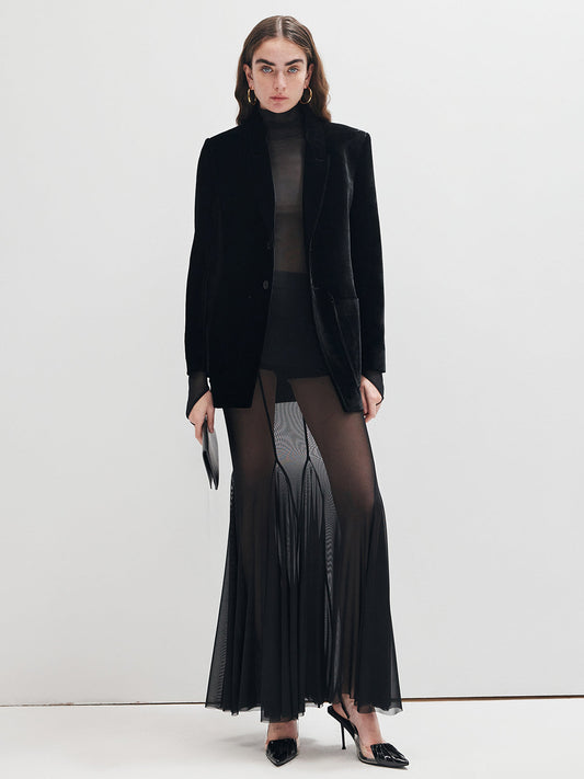 Yarı Şeffaf Yapay Elmas Kadife Panel Dantel İnce Üst