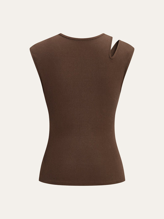 Retro Asimetrik Yaka Kırpılmış Tişört