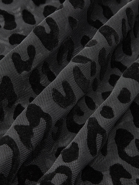 Yarı Şeffaf Dantel File Uzun Kollu Üst