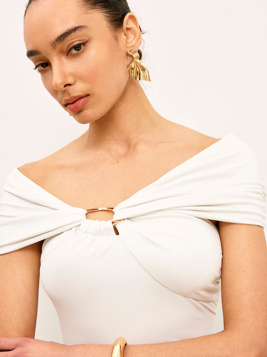 Criss Cross Soğuk Omuzlu Yivli Üst