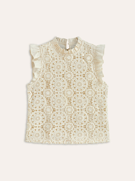 Pamuk Ve Keten Dantel Nakışlı Üst