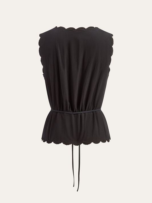 Çiçek İşlemeli Bağlamalı Fileli Tank Top