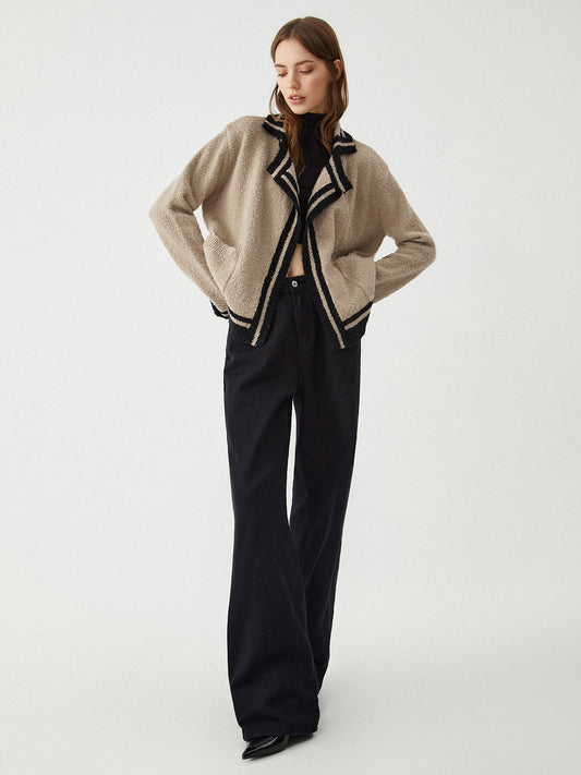 Kontrast Dikişli Kısa Kollu Kırpılmış Hırka
