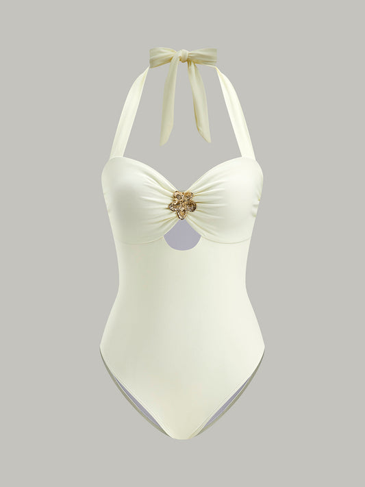 Metal Detaylı Büküm Ön Tek Parça Mayo
