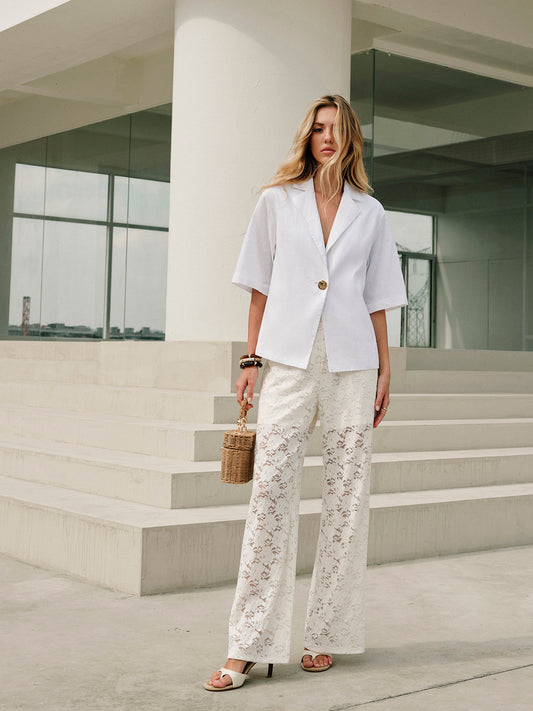 Yarı Şeffaf Yuvarlak Yaka Keten Bluz