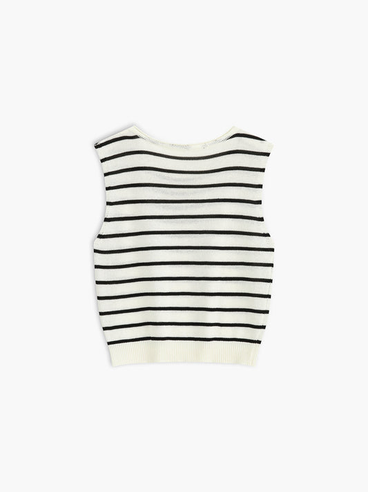 Çizgili V Yaka Önden Bağlamalı Kazak Yelek