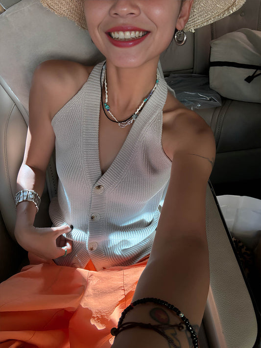 Kablo Örgülü Kolsuz Düğmeli Yelek