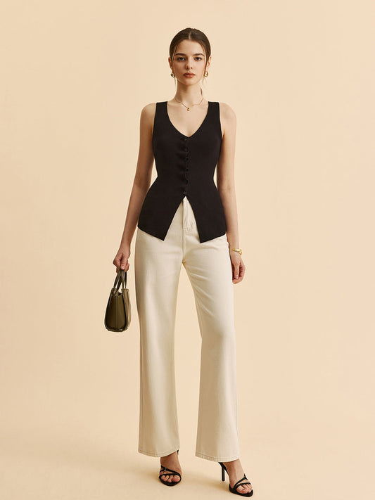 Yapılandırılmış Peplum Düğmeli Örgü Yelek