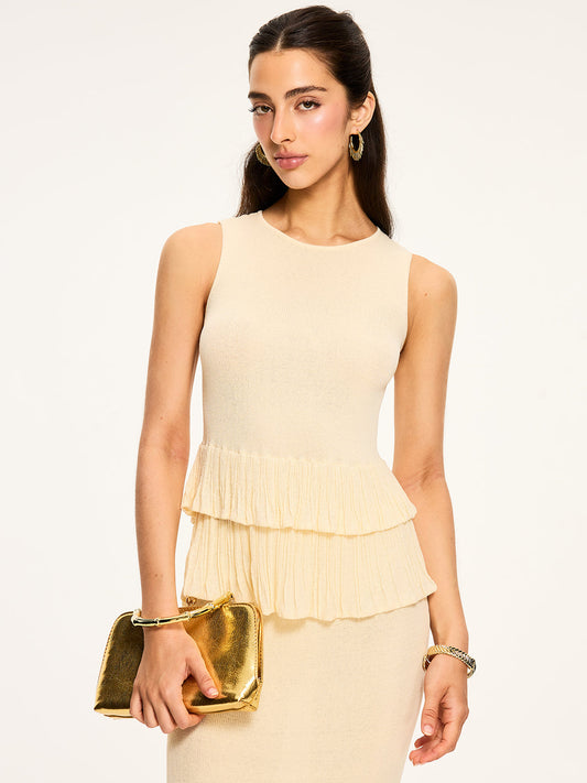 Yan Bağcık Detaylı Örme Kolsuz Üst