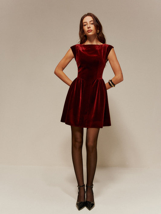 Balıkçı Yaka Düğümlü Kadife Elbise
