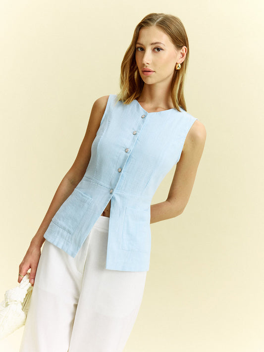 Düğme Detaylı Kolsuz Yelek