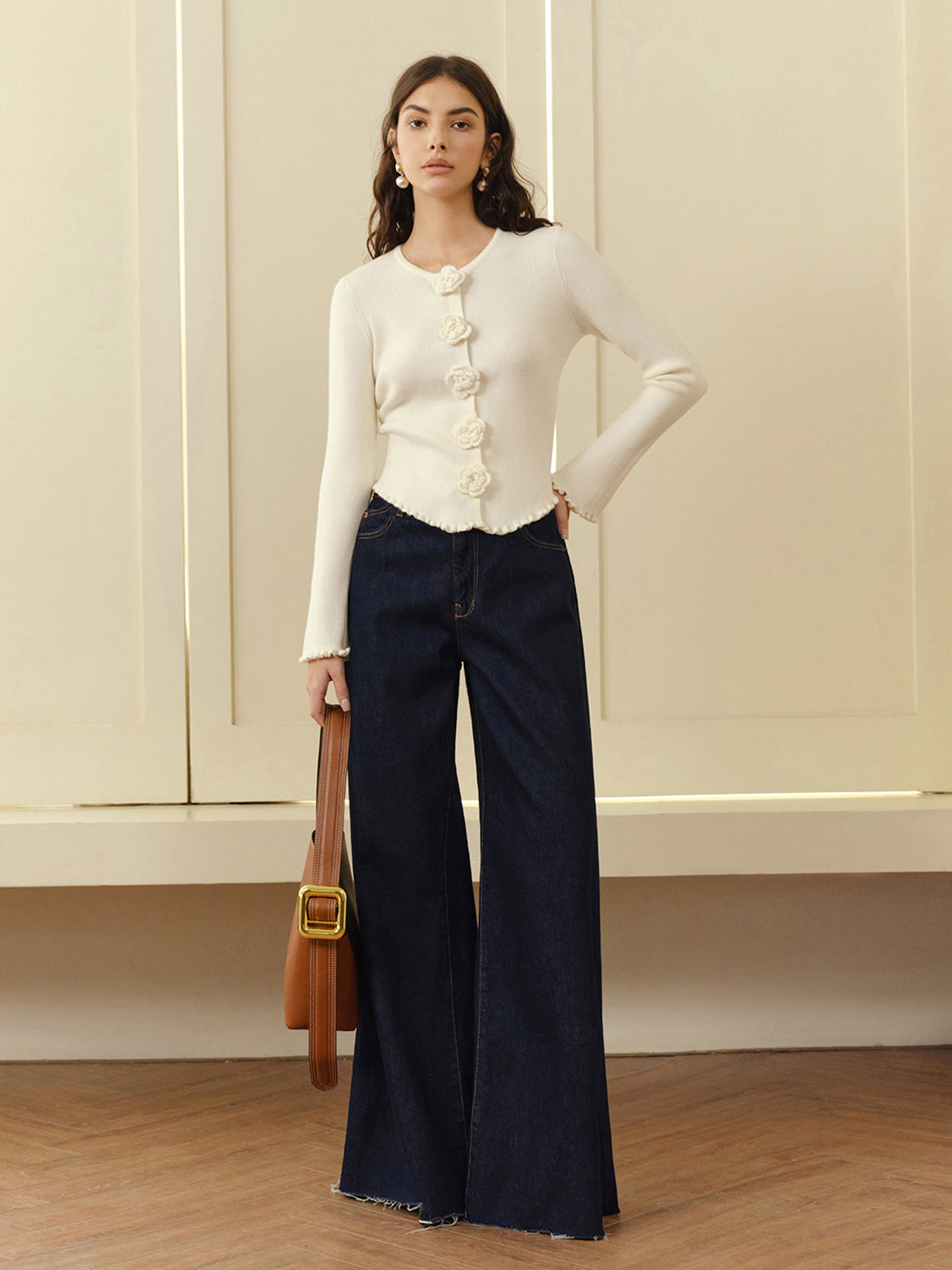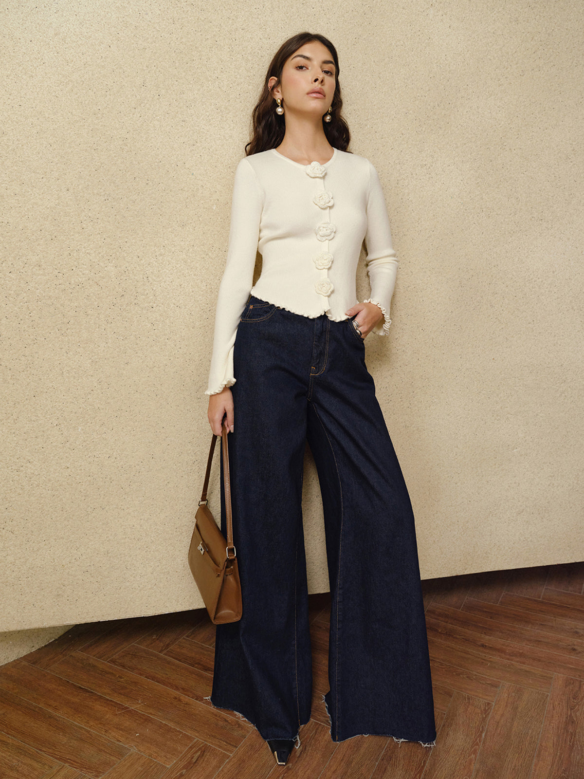 3D Çiçekli Marul Kenarlı Hırka