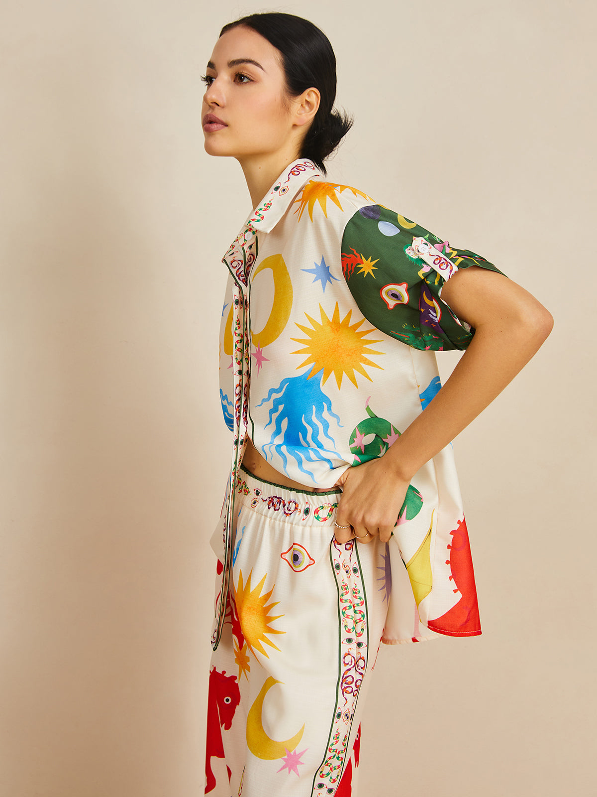 Günlük Shift Keten Karışımı Stil Baskılı Pantolon Takımı