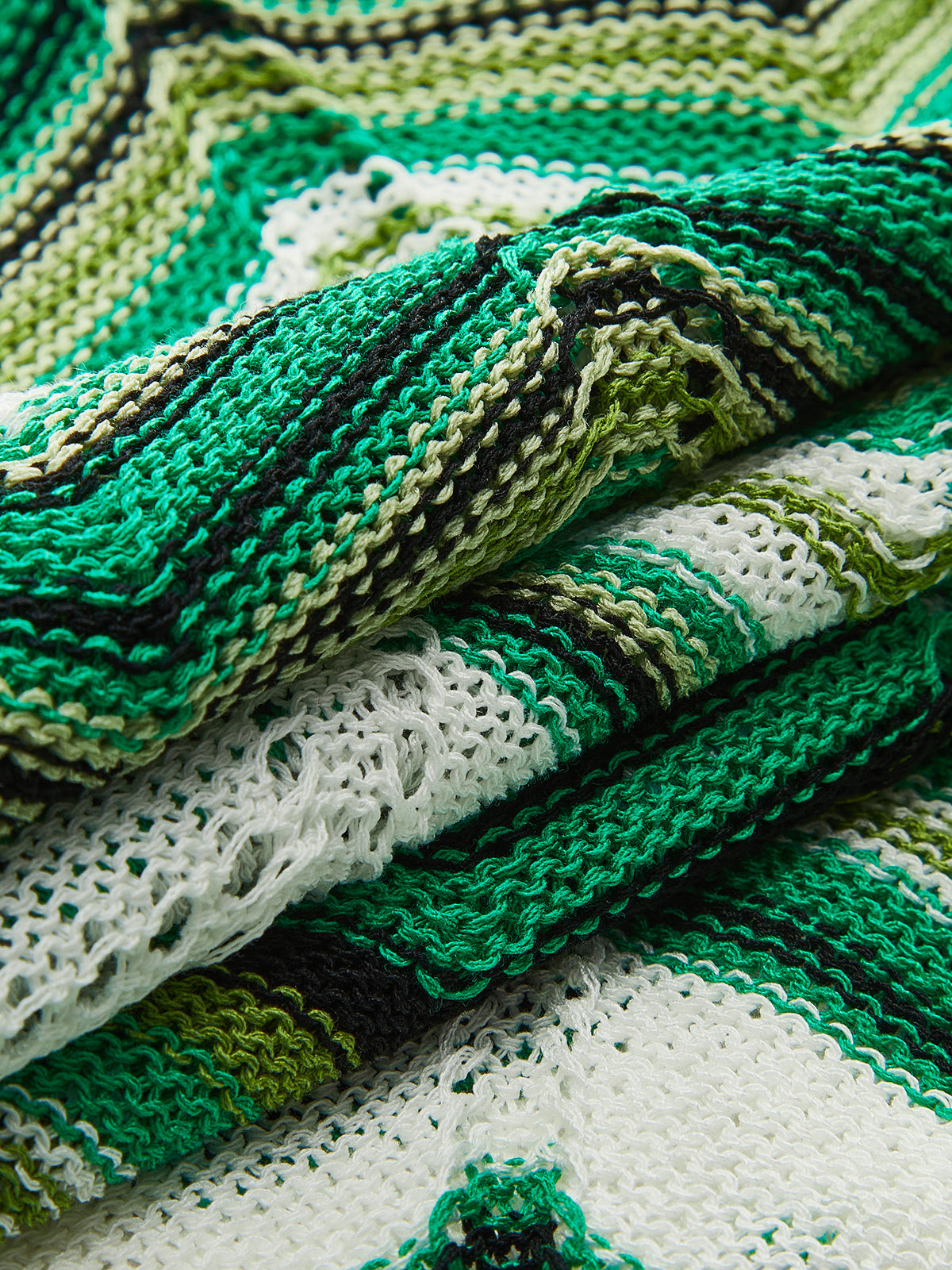 Chevron Desenli Kravat Askılı Örgü Midi Elbise