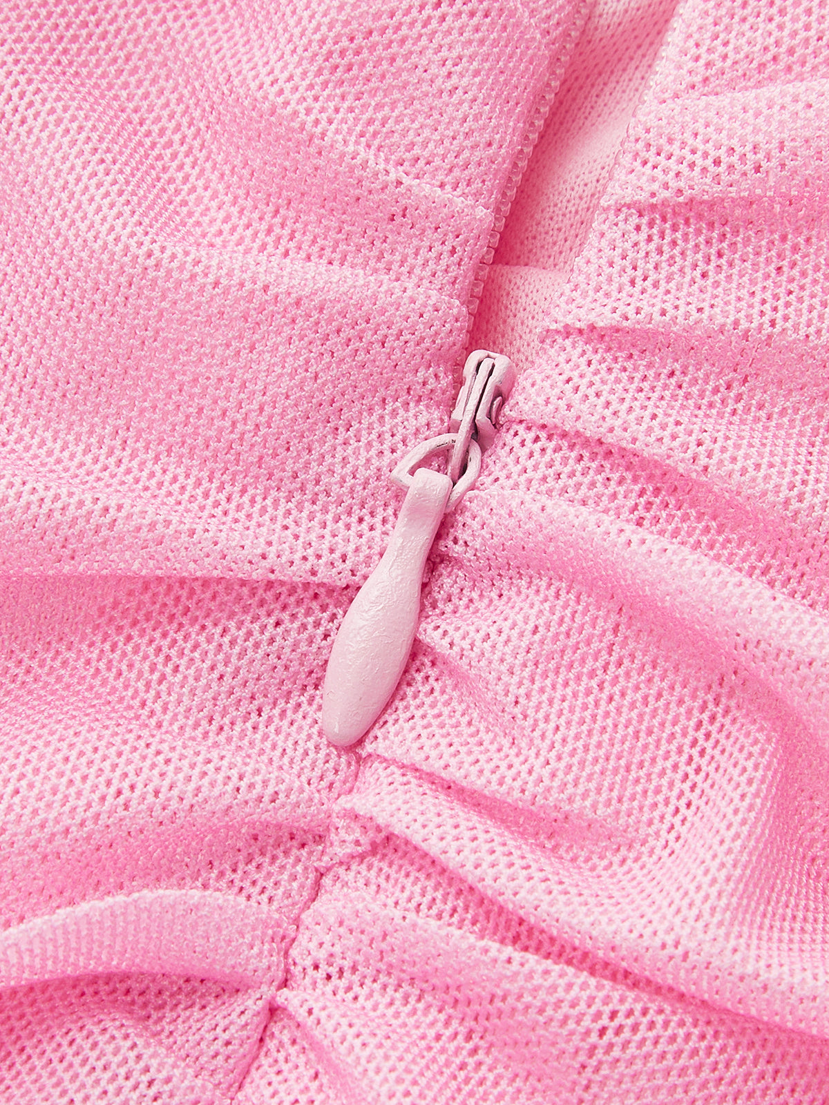 Renk Bloklu Degrade Straplez Kıvrımlı File Bölünmüş Elbise