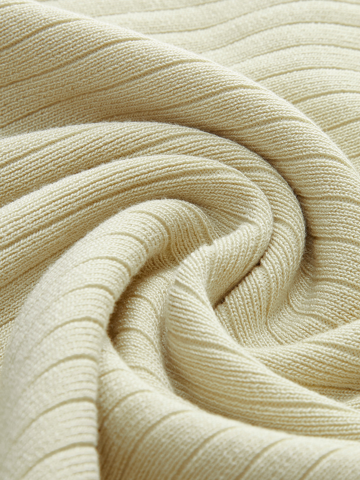 Kontrast Trim Yakalı Kaburga Örgü Kısa Kollu Midi Elbise