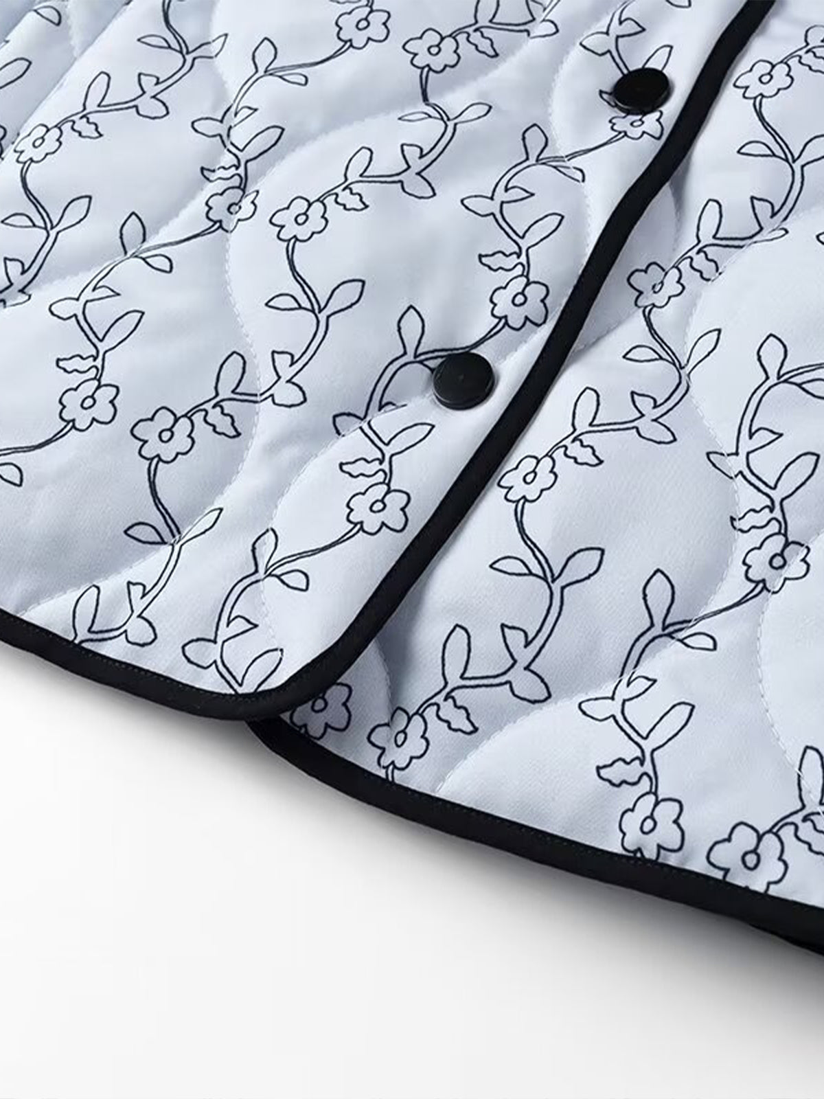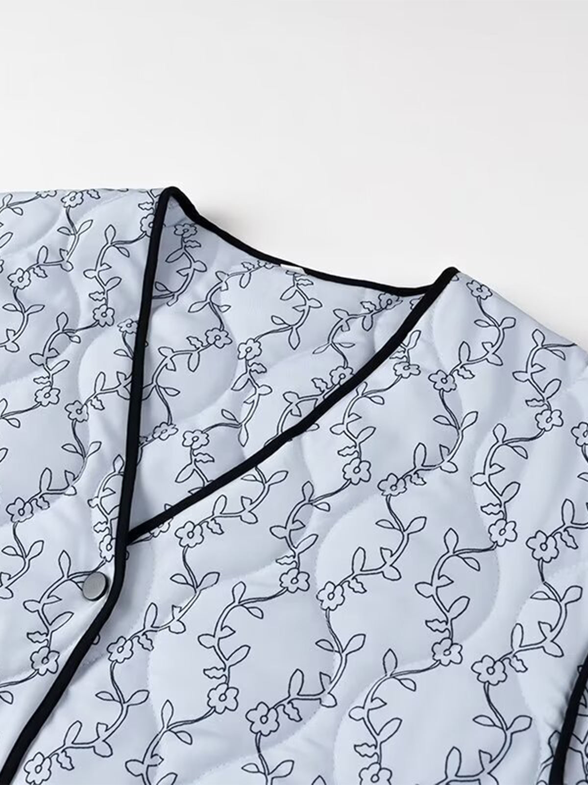 Kontrast Trim Baskılı Düğme Kışlık Mont