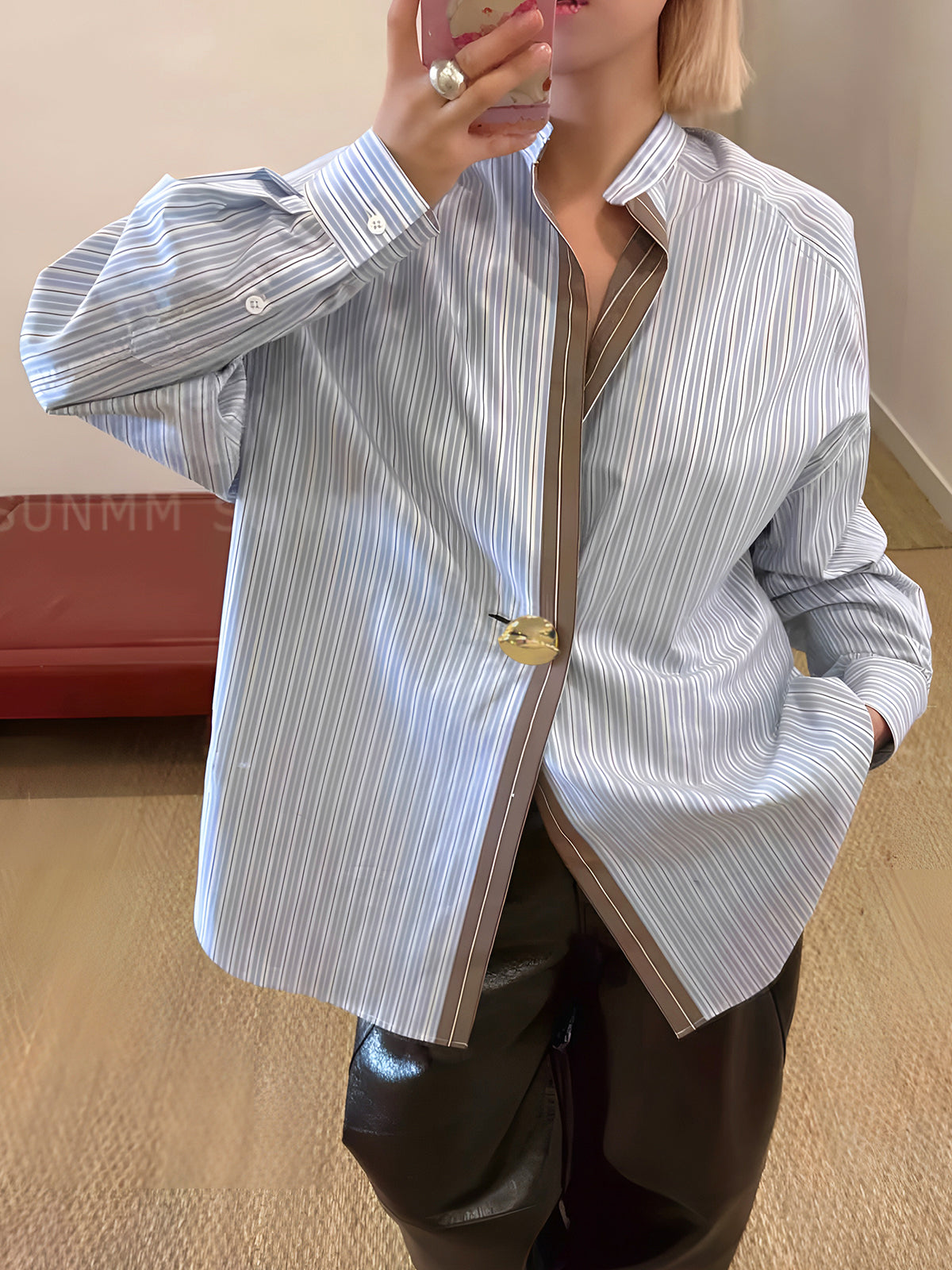 Pamuklu Kontrast Kesim İnce Çizgili Polo Gömlek