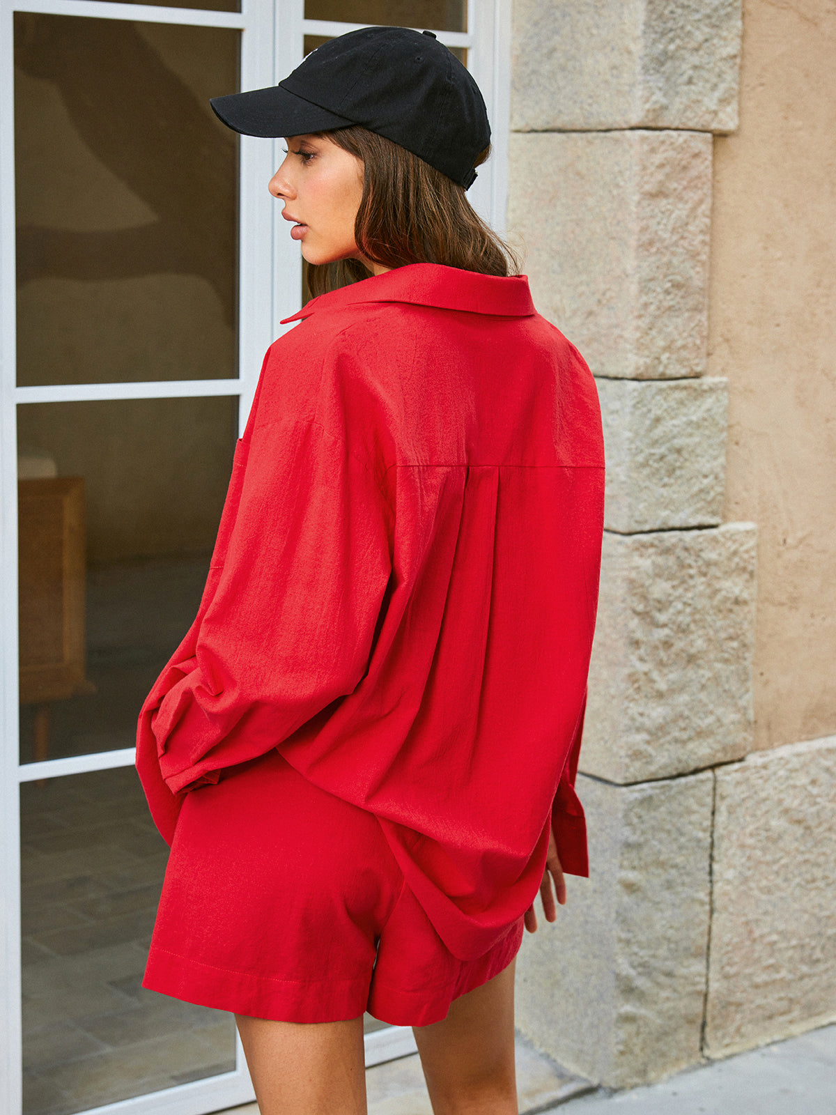 Pamuklu Cepli Bağcıklı Şort Takımı