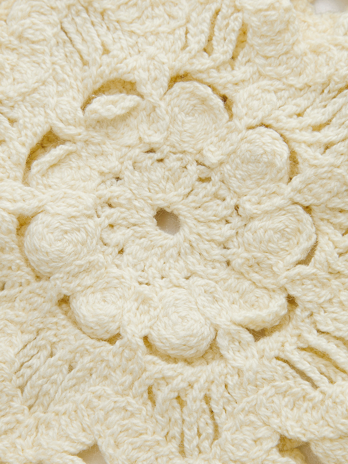 Çiçekli Tığ İşi Düğme Detaylı Yelek