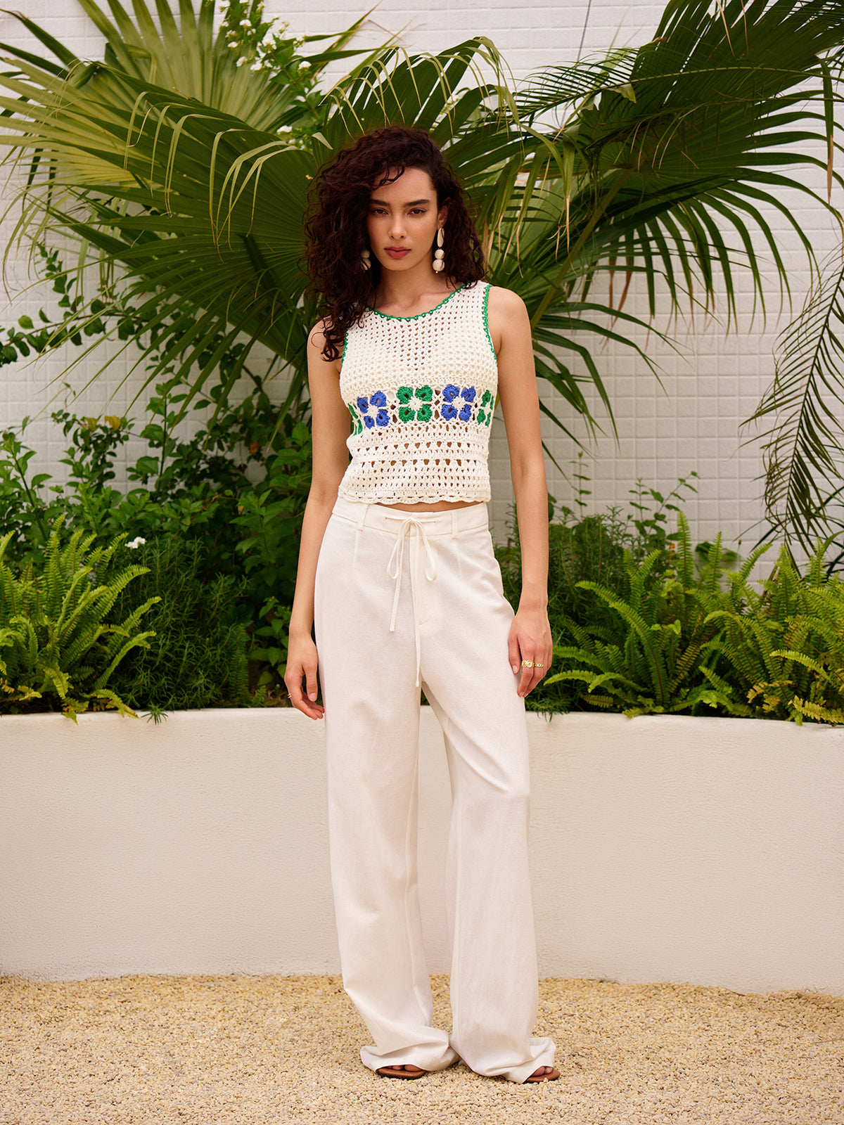 Çiçekli Tığ İşi Kazak Yelek