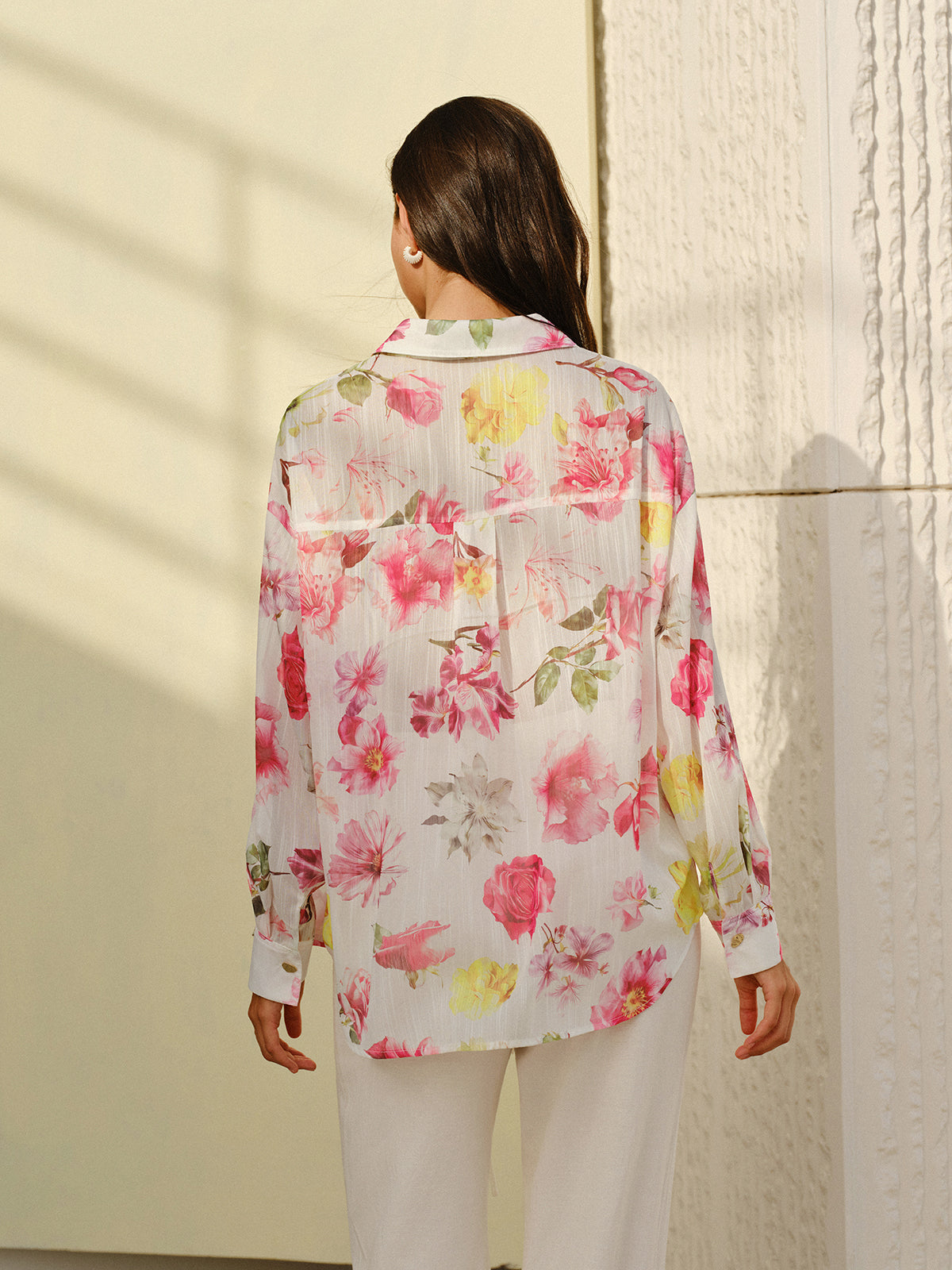 Çiçek Desenli Uzun Kollu Düğmeli Gömlek