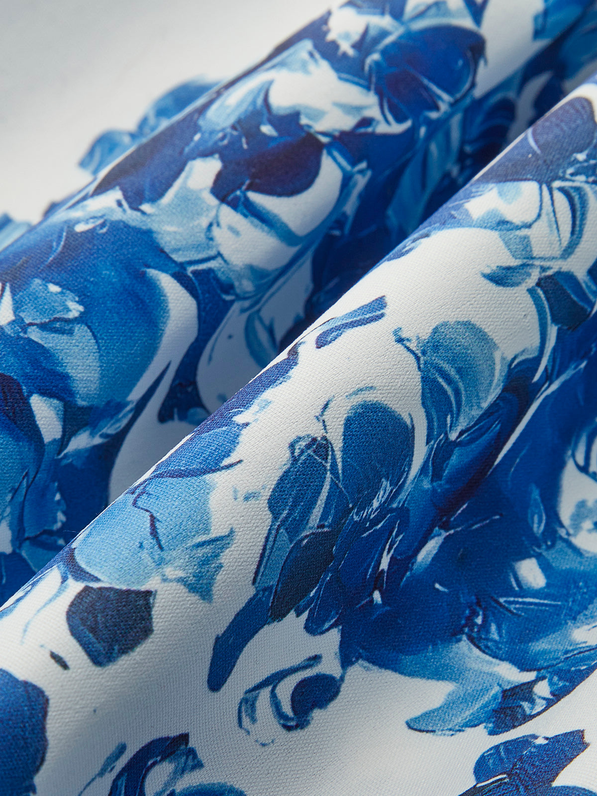 Çiçek Desenli Bağcıklı Kalp Yaka Elbise