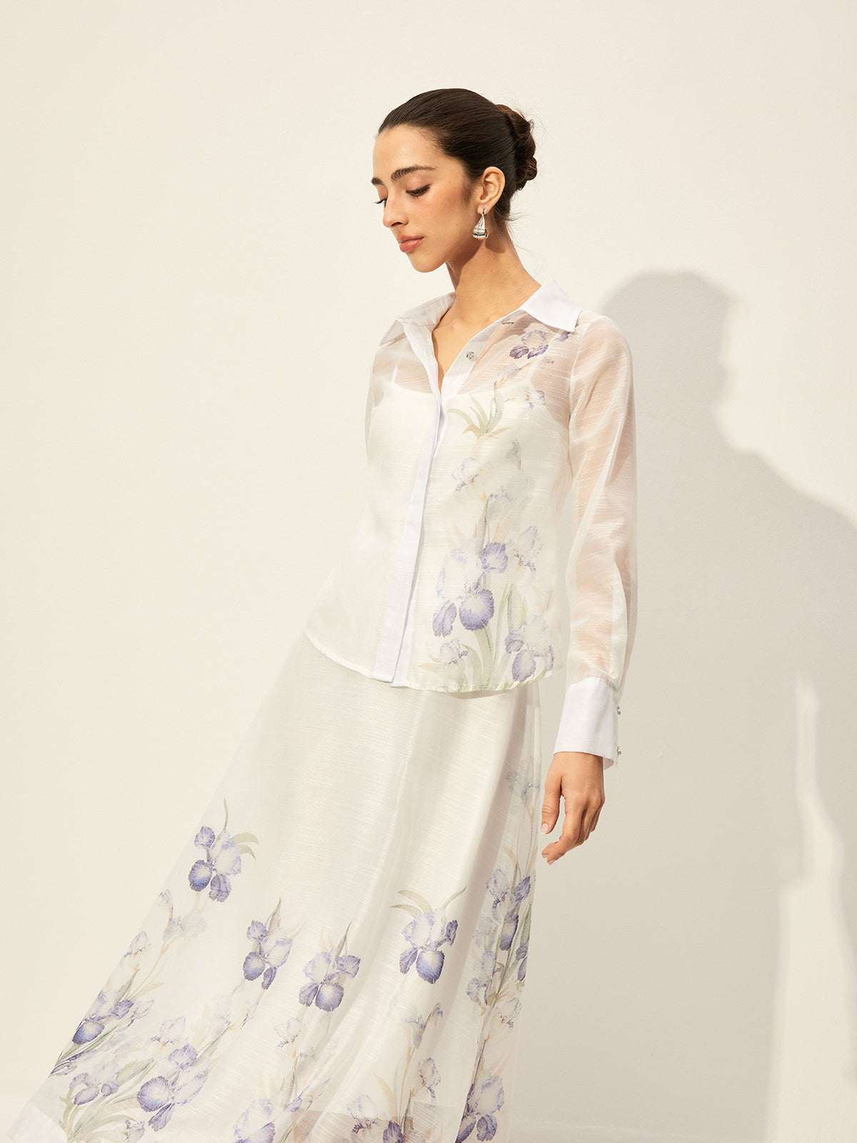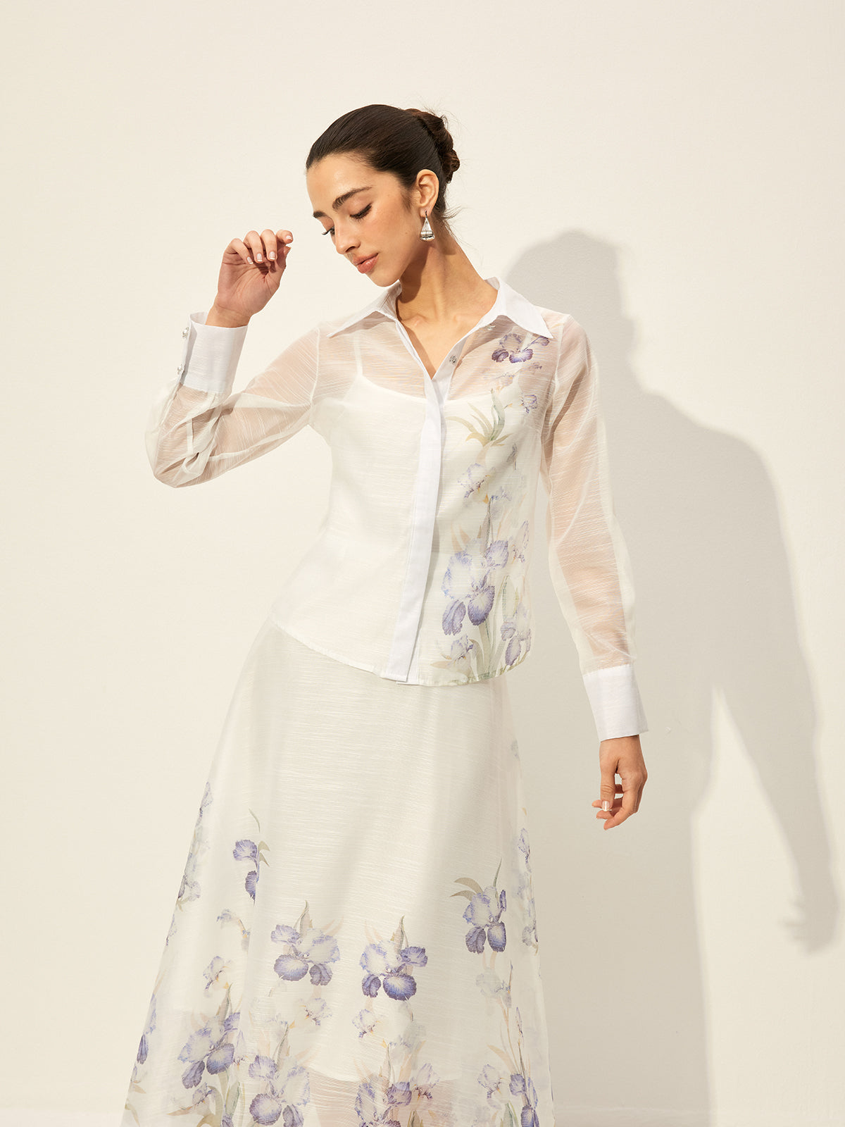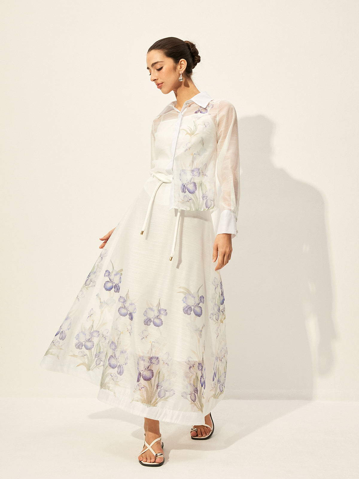 Çiçekli Yarı Şeffaf Etek Takımı Bel Bağcıklı