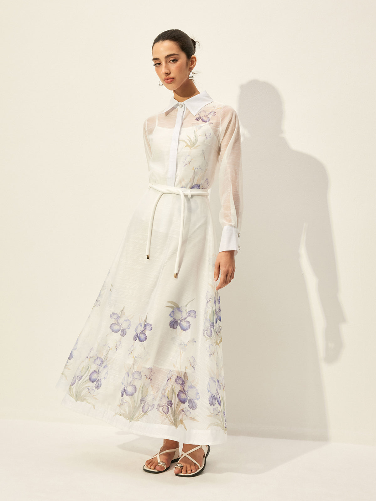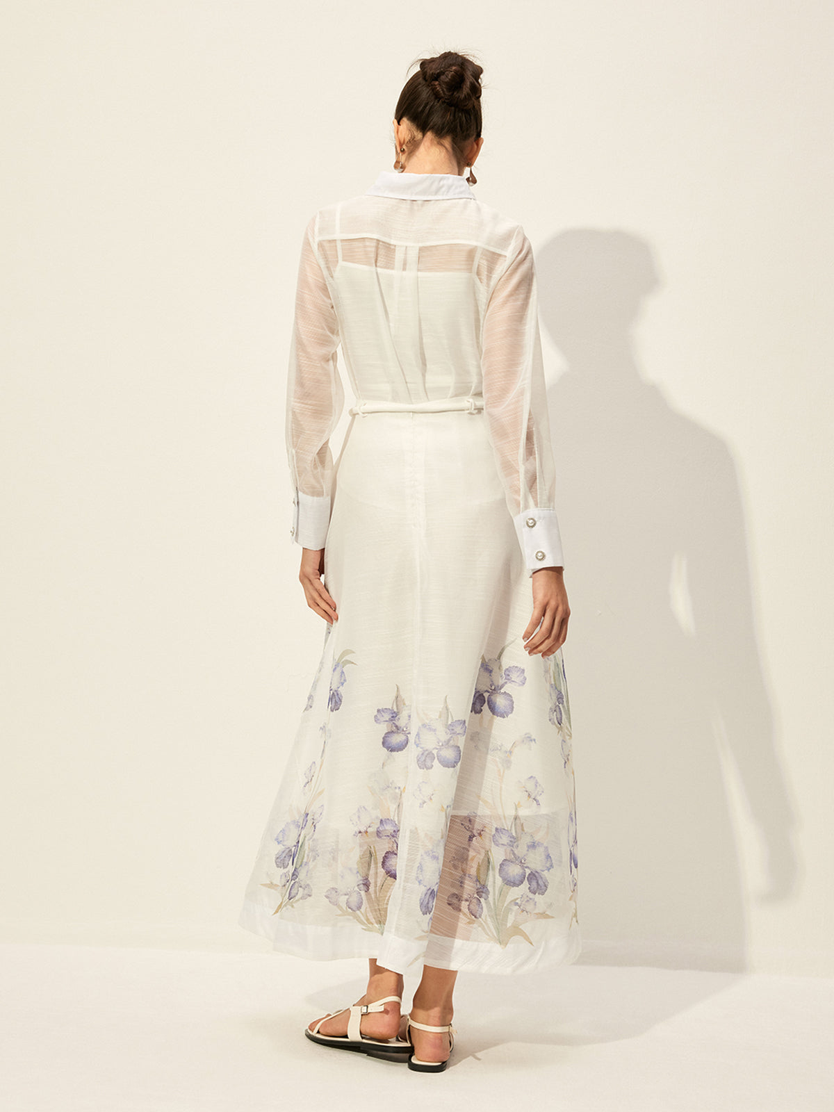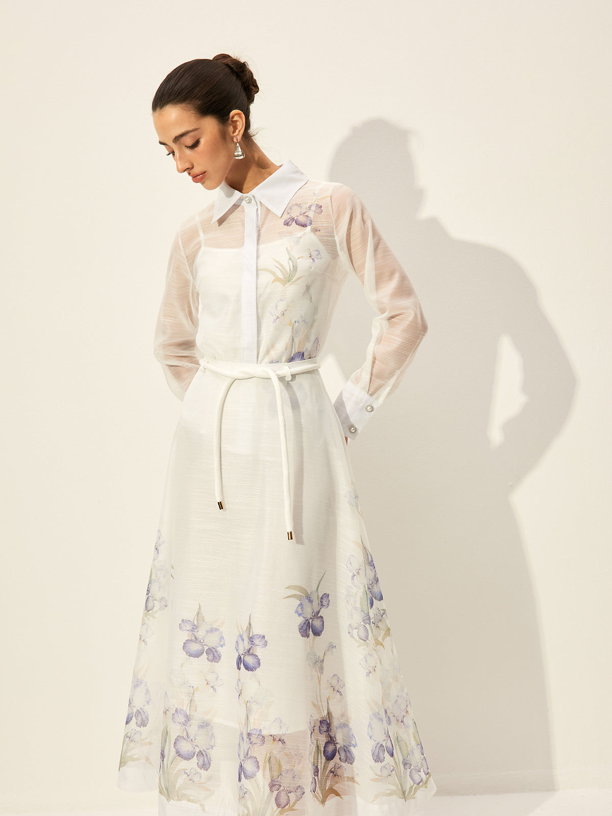 Çiçekli Yarı Şeffaf Etek Takımı Bel Bağcıklı