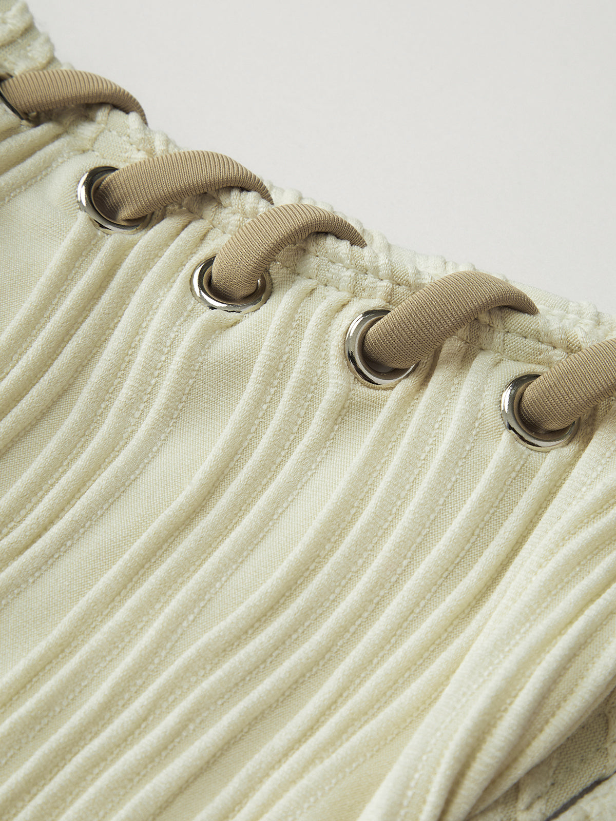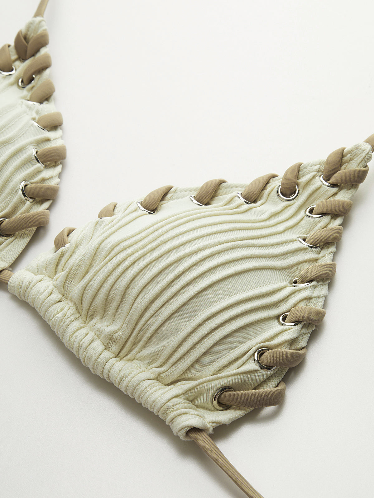 Grommet Bağcıklı Büzgülü Bikini Takımı
