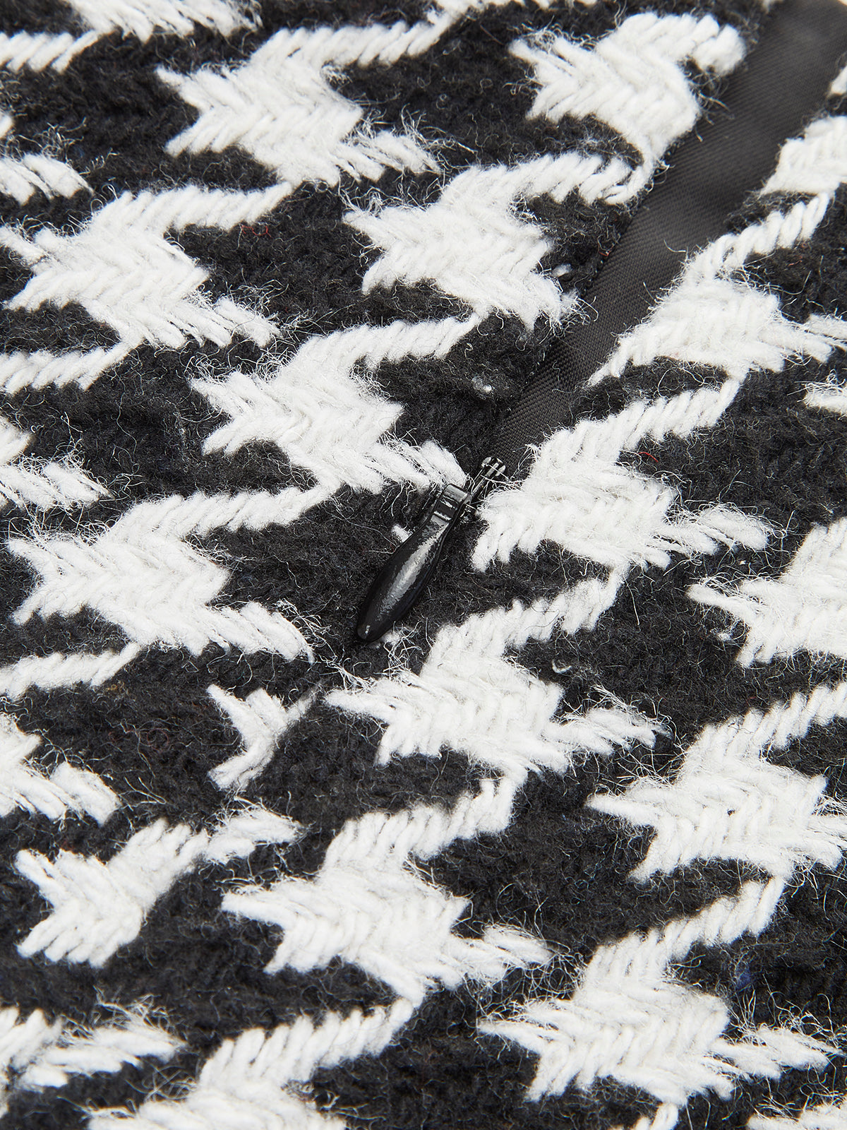Yüksek Bel Metal Düğmeli Houndstooth Şort