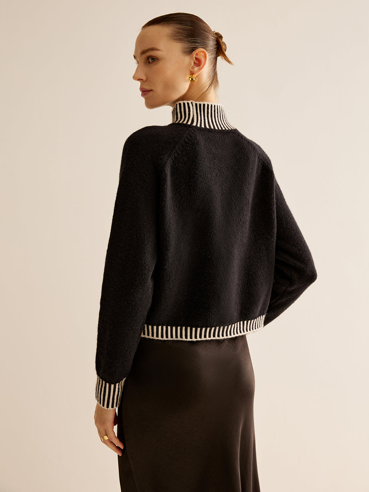 Balıkçı Yaka Kontrast Çizgili Kazak