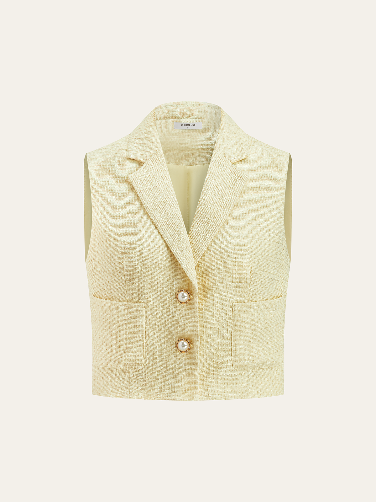 İnci Düğmeli Tweed Yelek Ve Şort Takımı