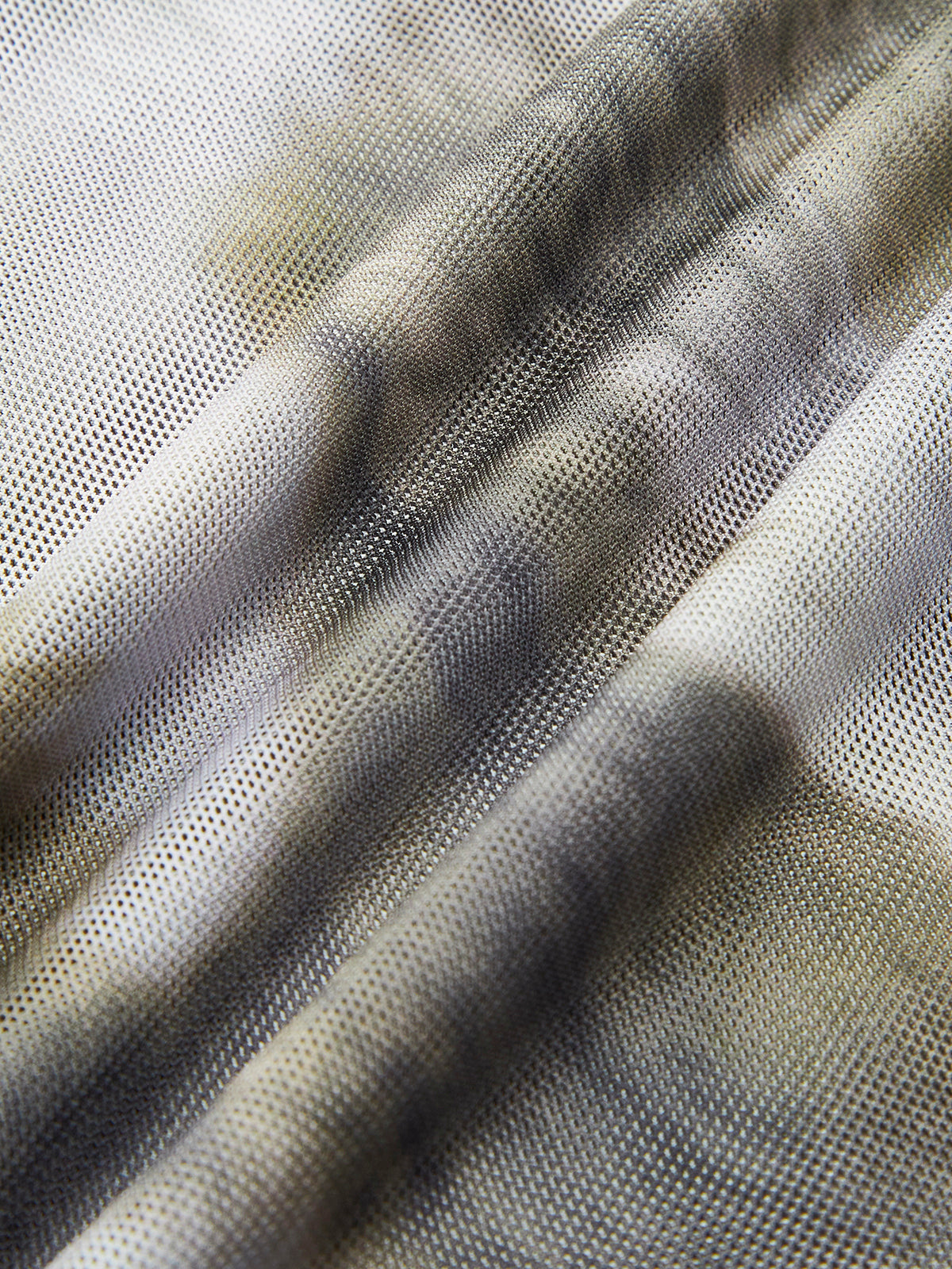 Yarı Şeffaf Asimetrik Baskılı Kırpılmış File Tişört