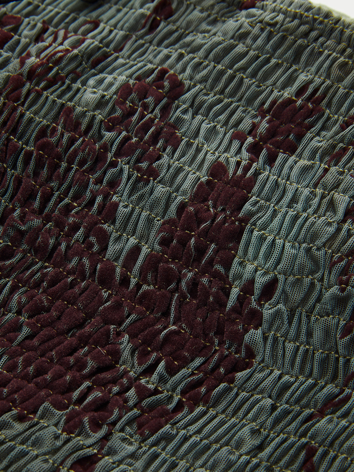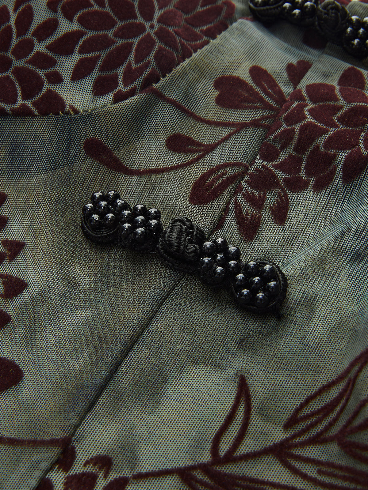 Yarı Şeffaf Düğme Detaylı Kadife Çiçekli Atlet Üst