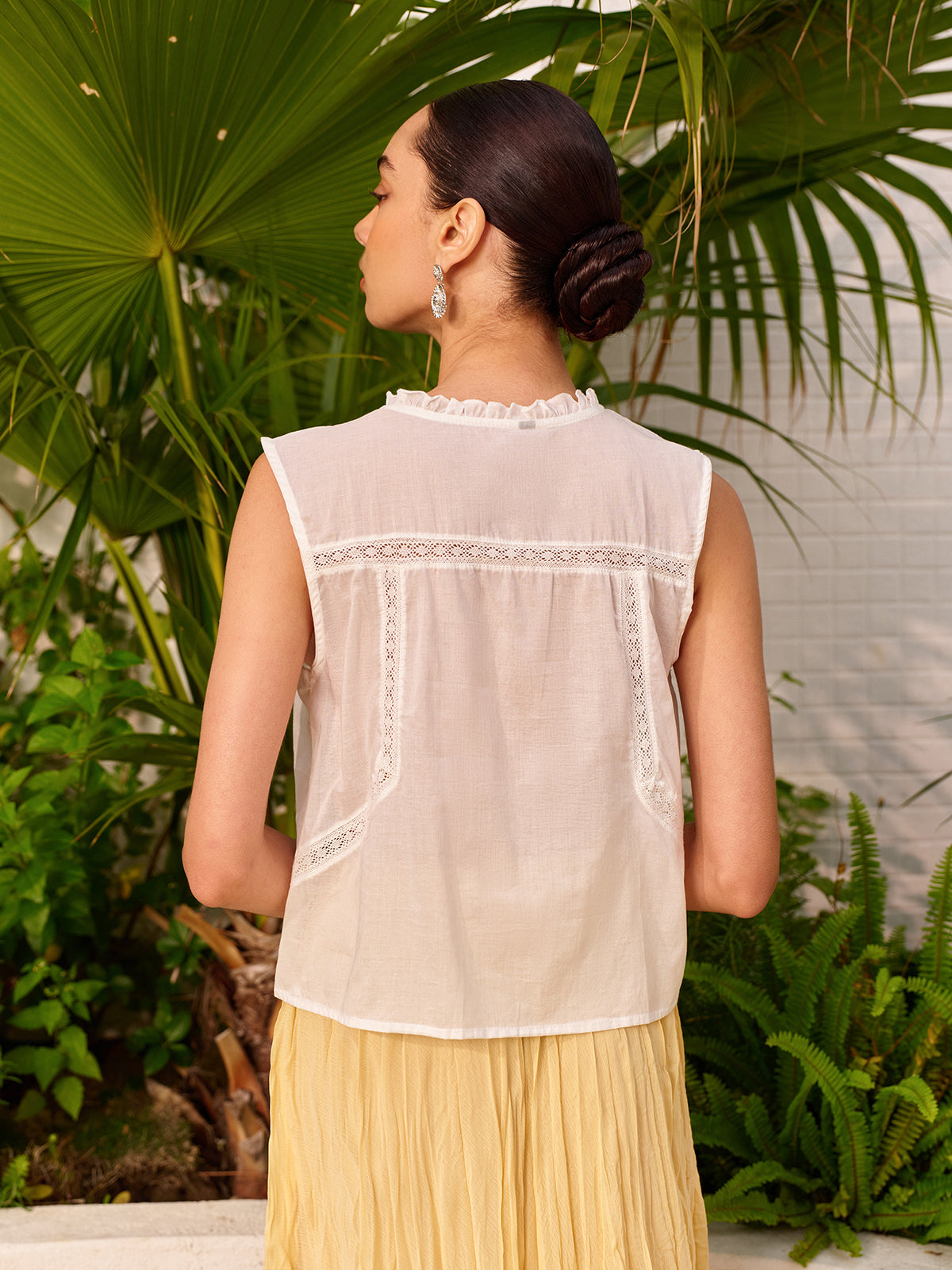 Yarı Şeffaf İşlemeli Dantel Kravat Bluz