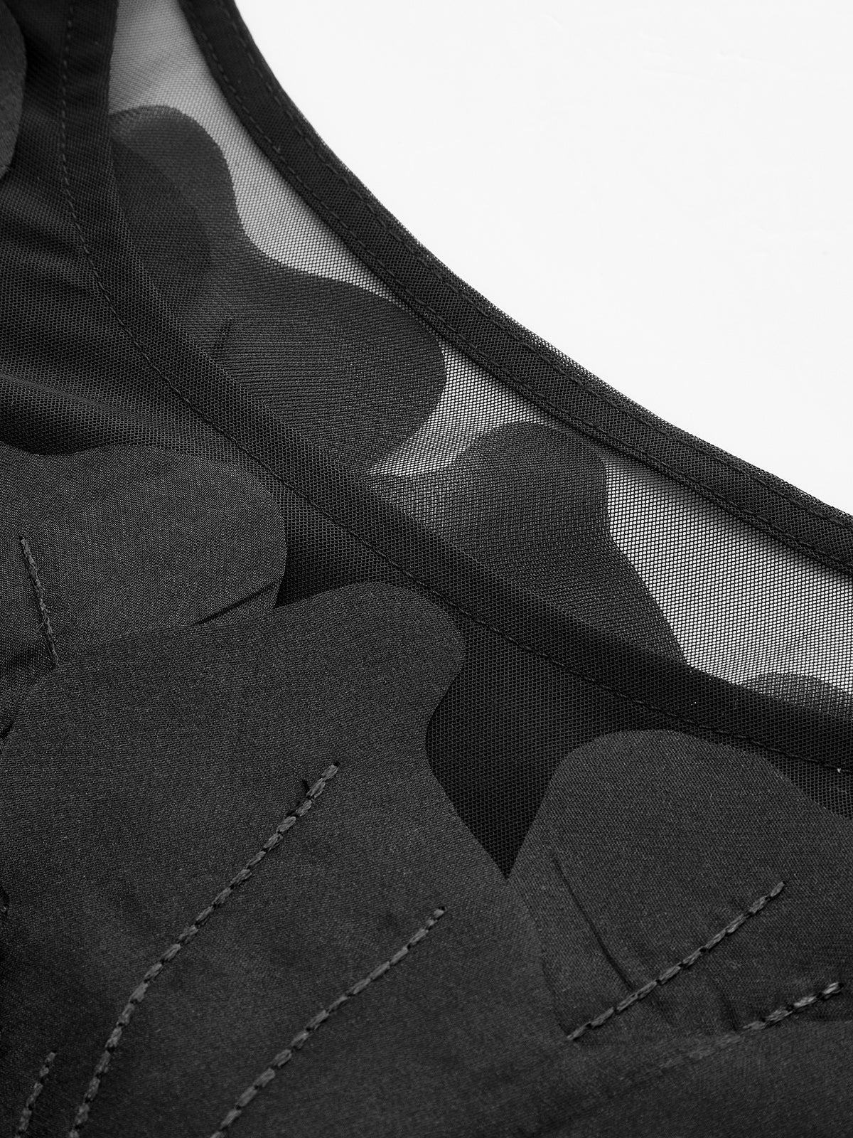 Yarı Şeffaf Çiçek Dekorlu İnce Bluz