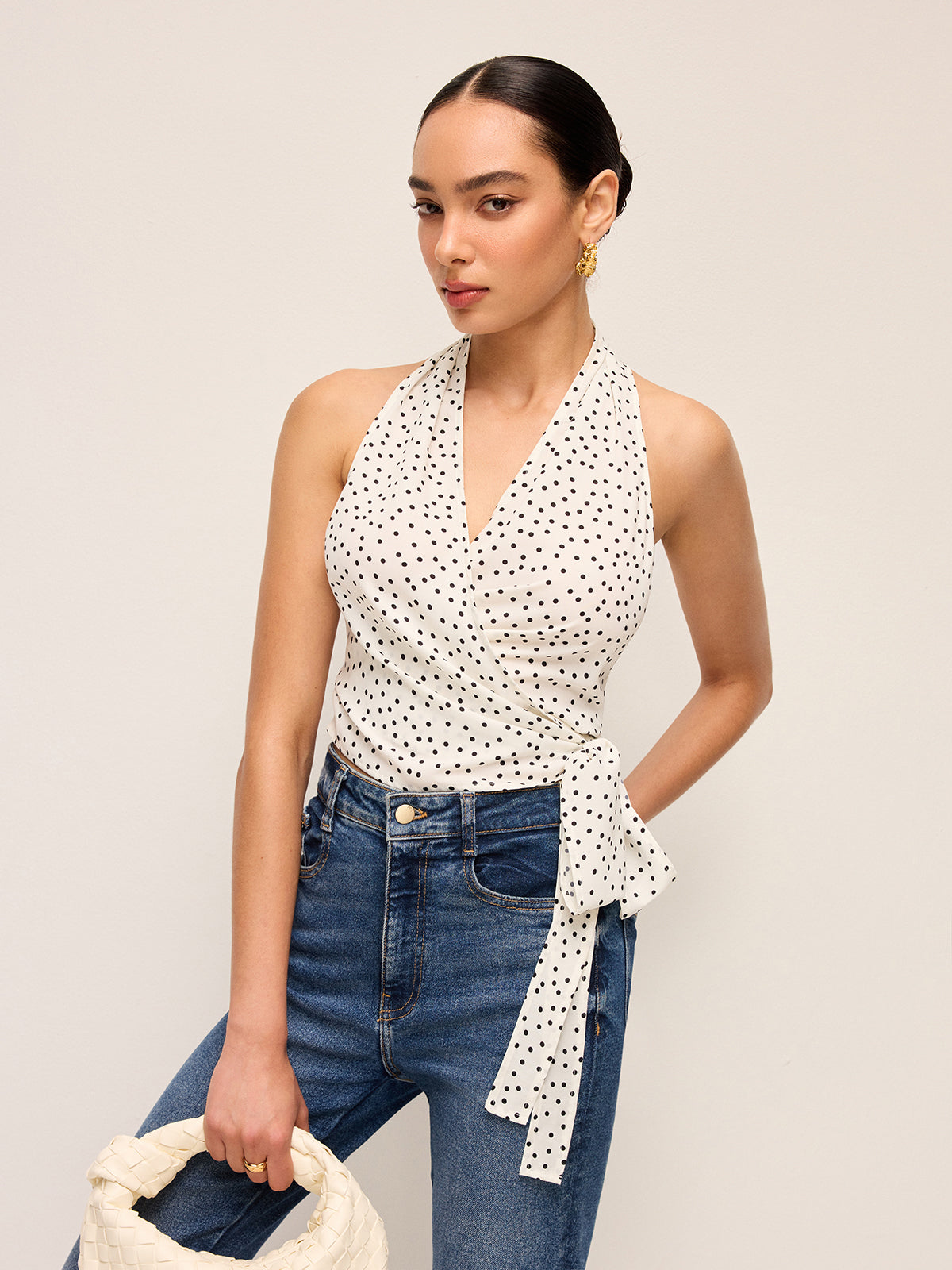 Yarı Şeffaf Polka Dot Sarma Askılı Üst