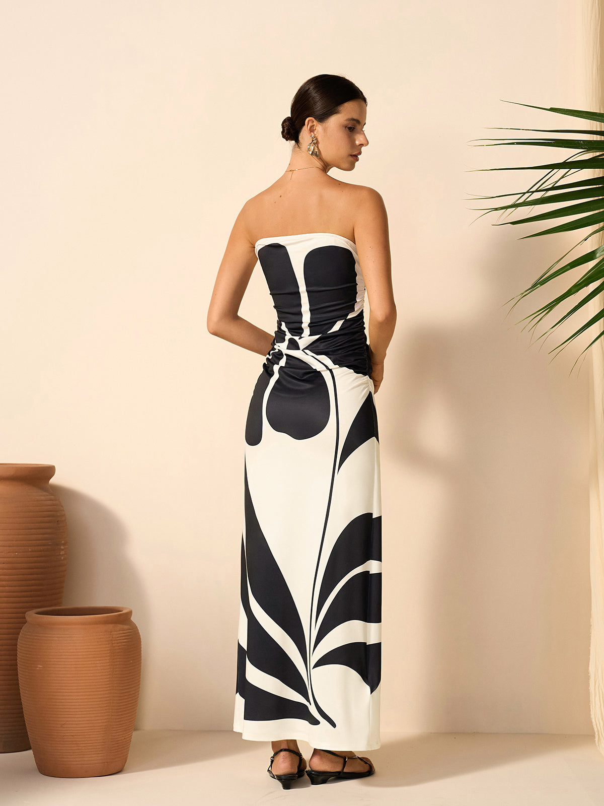 Yarı Şeffaf Straplez Çiçekli Elbise