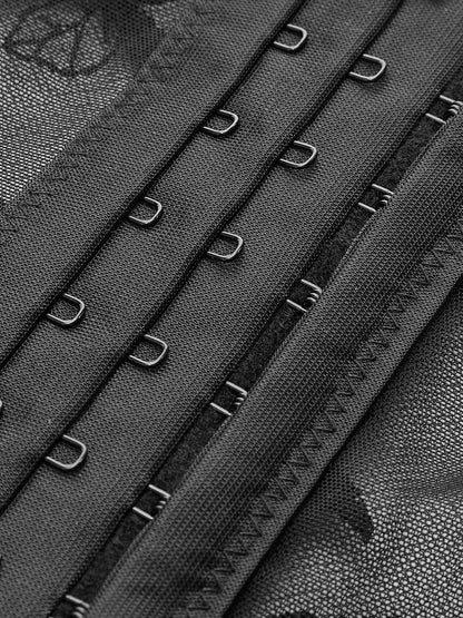 Şeffaf İşlemeli Çiçekli Fırfırlı Dantel Korse