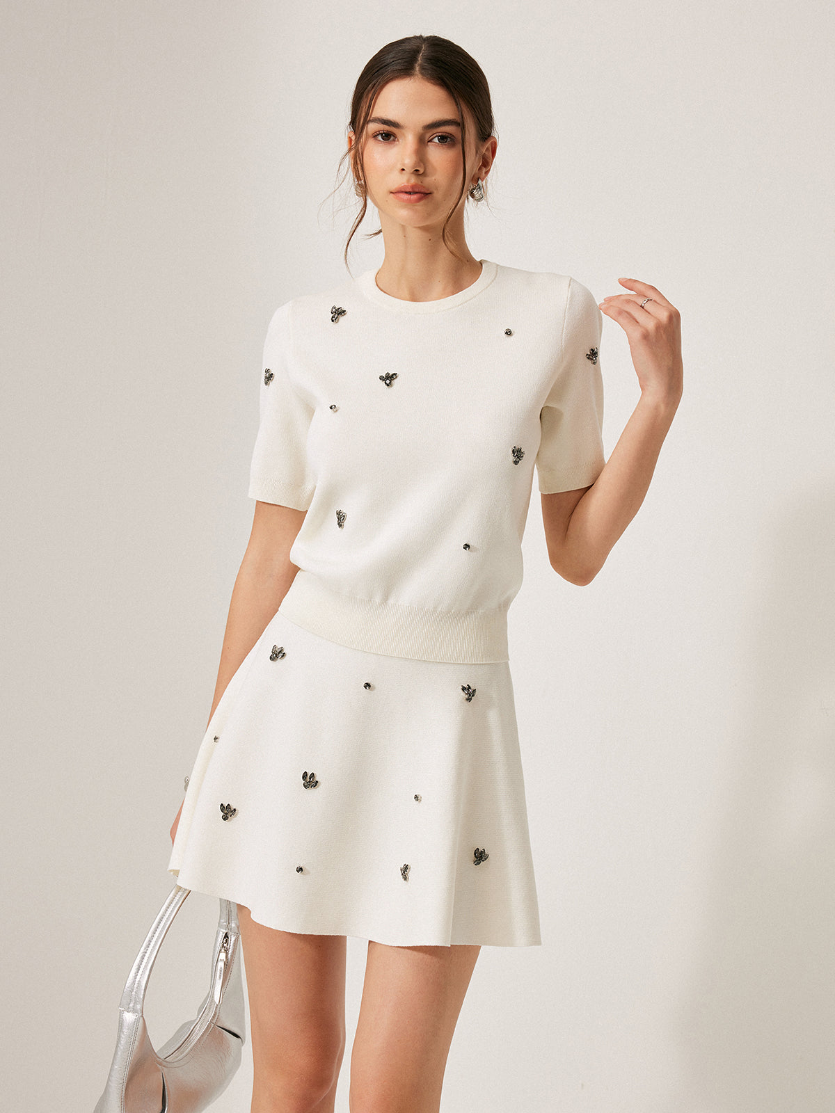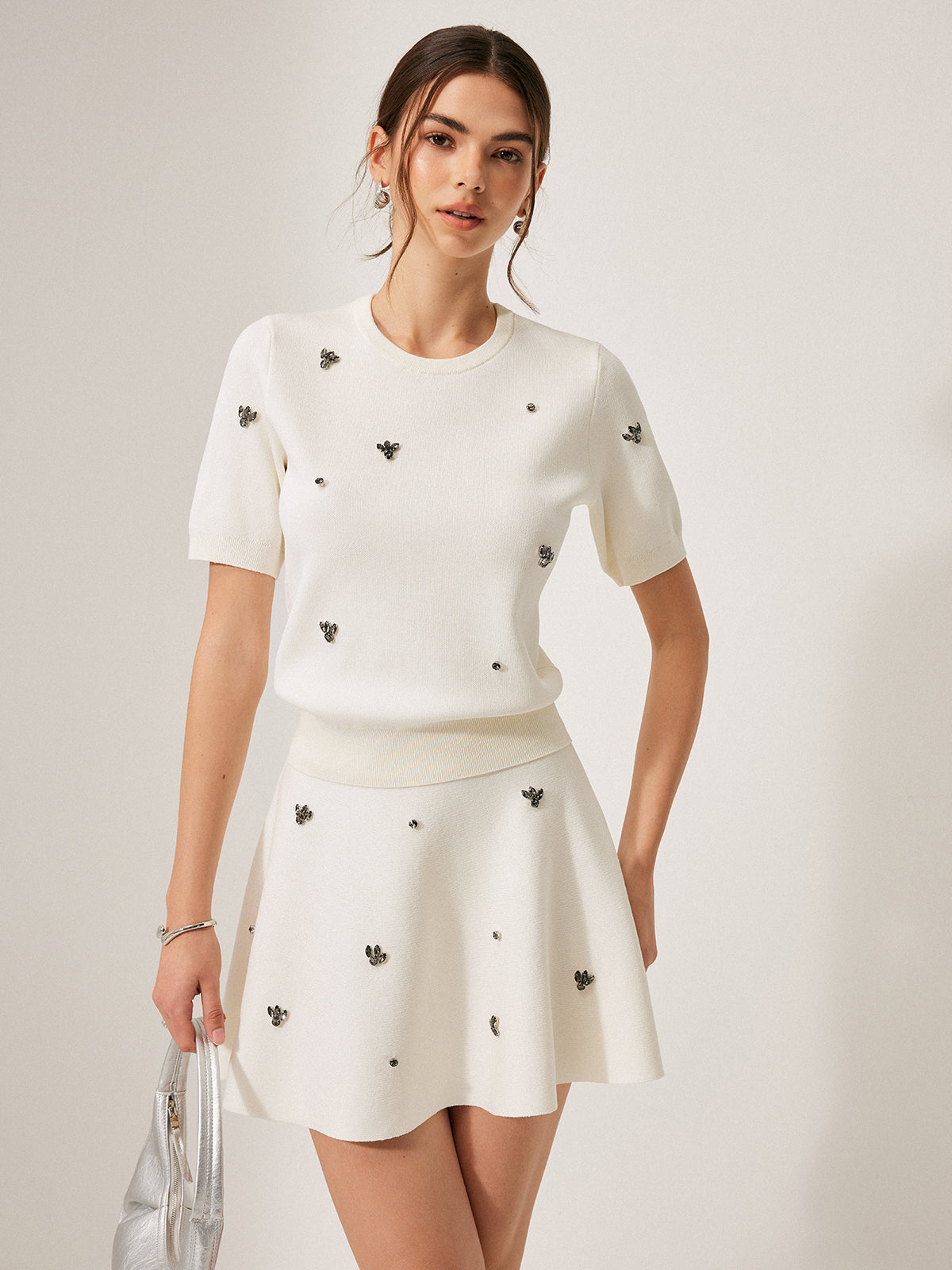 Kısa Kollu Metal Detaylı Düz Kazak