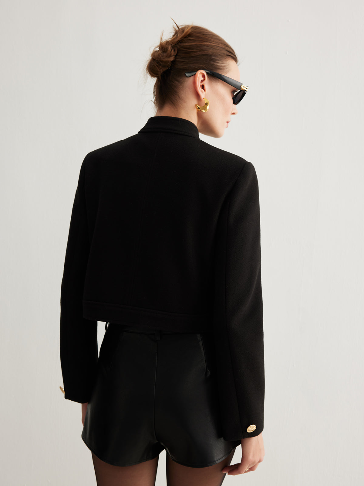 Stand Yaka Düğmeli Tweed Kısa Ceket