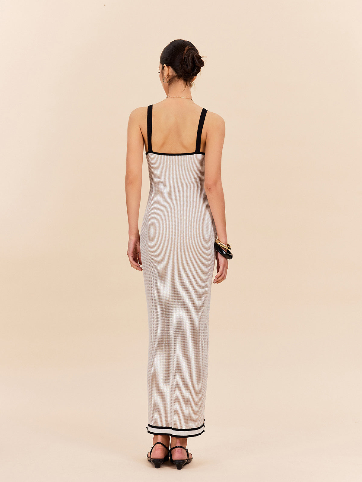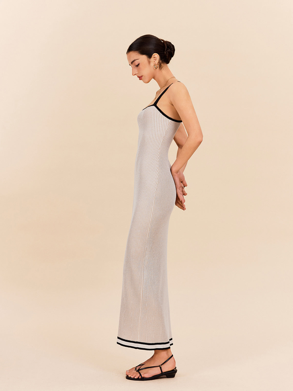 Çizgili Kontrast Kesim İnce Askılı Kazak Elbise